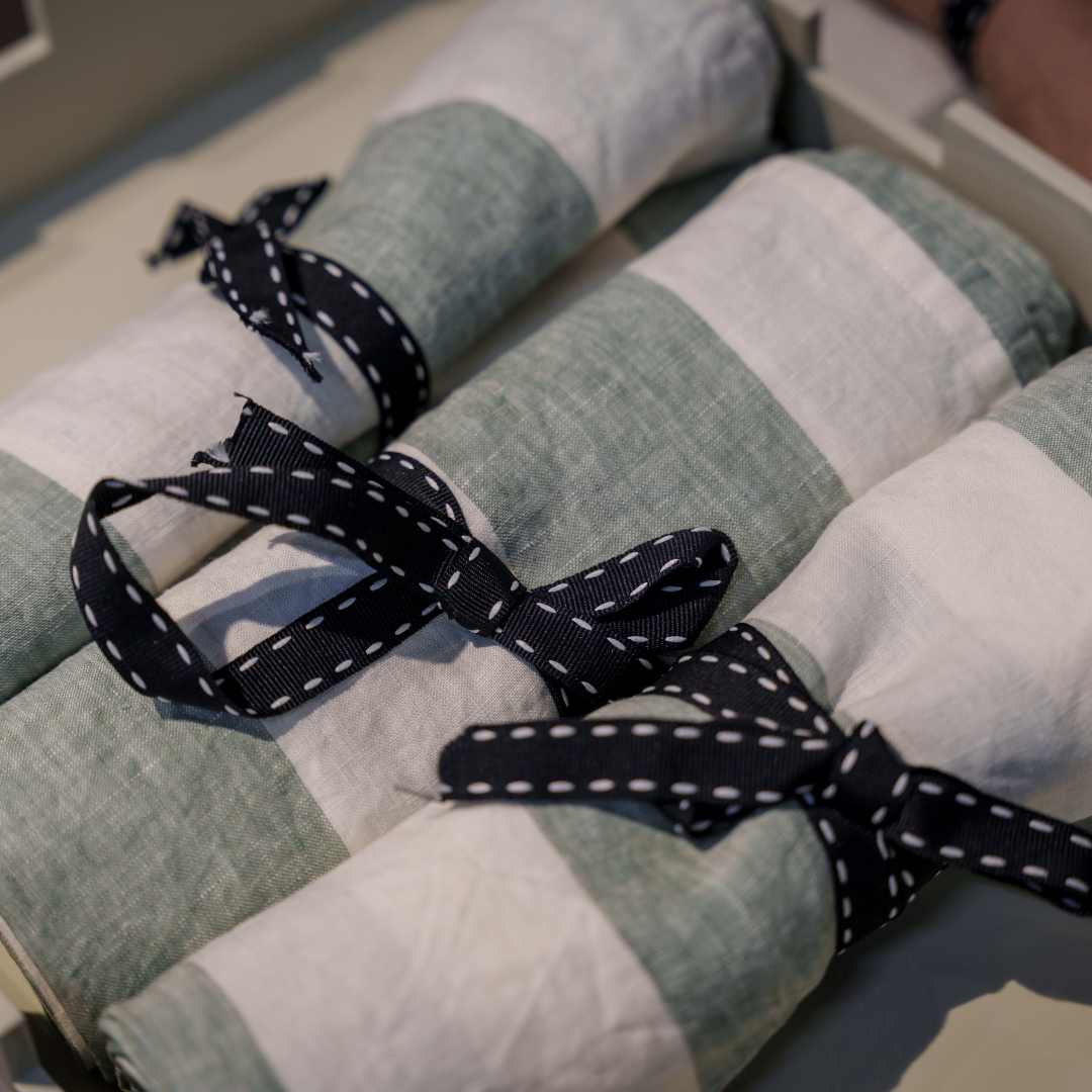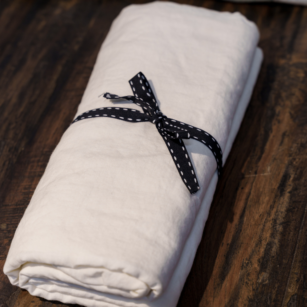 Our best selling white hemstitch linen napkins come in standard size, and also in our super extra large size for that added statement.